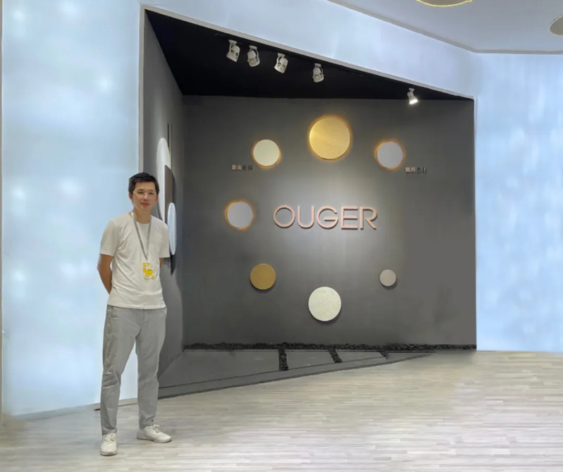 谭锡泉与两位志同道合的高中同学一直酝酿创办一家环保型的新材料企业。2019年,天时地利人和,理想终于实现,三位股东共同创立“Ouger奥格新材”。这是一家专注于全空间3D表面装饰膜的新型环保饰面材料公司,产品广泛应用于生活方方面面,从家具、门窗、地板、冰箱、空调、扬声器到汽车、船舶、高铁均会使用,令所“覆”之处焕然一新,给用户带来良好的使用体验。