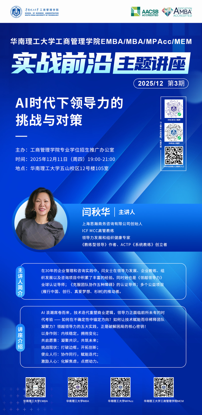 预告 | 实战前沿讲座@闫秋华:AI时代下领导力的挑战与对策
