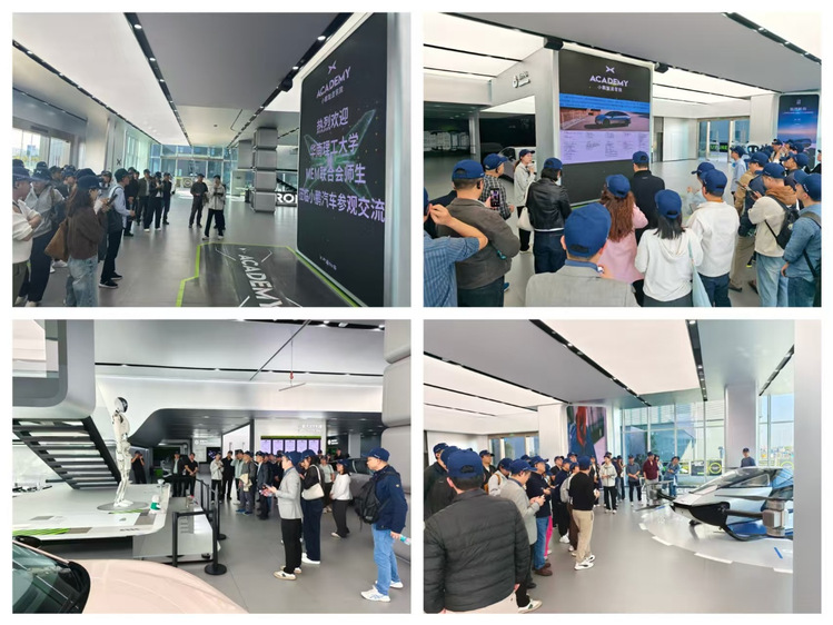 参访伊始,大家跟随工作人员走进科技感十足的展厅,AI汽车家族、AI机器人、AI图灵芯片以及飞行汽车等一众展品尽数陈列其中,全面展示出小鹏汽车“智能”、“绿色”的企业发展理念。