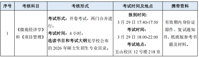 非全日制MEM专业课笔试将统一于3月28日上午进行,英语听说能力测试及面试于3月28日下午、3月29日全天进行。