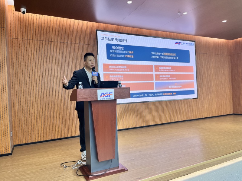 活动伊始,师生及校友一行参观了艾尔佳科技产业园的仓库、洁净车间、展厅及报告厅,零距离感受其现代化生产线与高标准洁净环境。从汽车智能座舱到芯片半导体,从生命科学到数据中心,从航空航天到轨道交通……艾尔佳的产品与技术已广泛赋能12大应用领域。截至2025年底,企业累计向全球交付空净过滤产品超1.07亿套,硬核实力充分彰显了国家级专精特新“小巨人”的行业地位。
