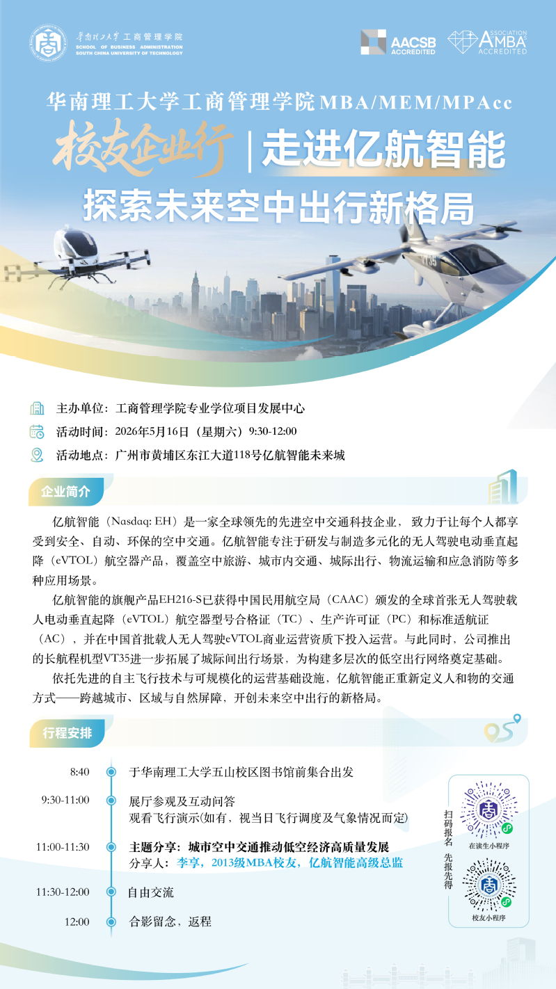 预告|校友企业行:走进亿航智能,探索未来空中出行新格局
